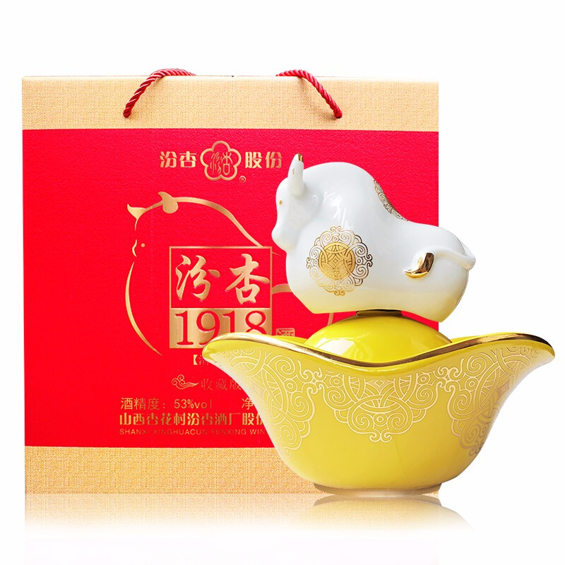 GJW 山西杏花村 汾杏股份出品53度1918收藏级 元宝牛造型1.5L大容量清香型白酒