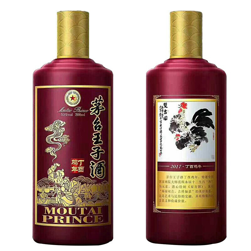 茅台王子酒生肖酒(丁酉鸡年)53度 酱香型高度白酒 500ML*6 整箱装 飞天价格随市场价格变动每天会有浮动,如有需要请咨询客服后再下单