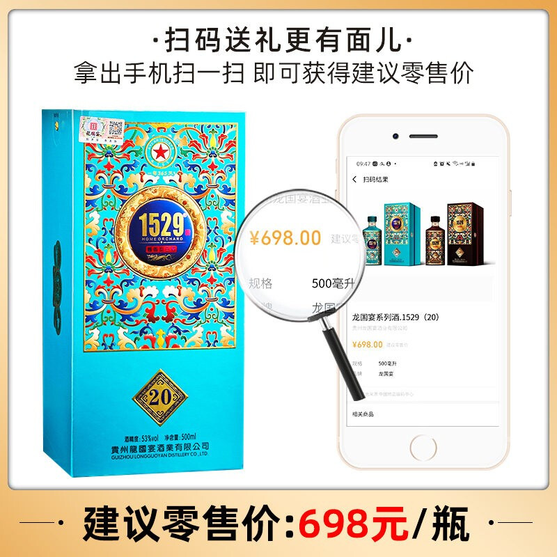 贵州龙国宴1529(20)蒂芙尼蓝 53度 酱香型白酒 500ml*4瓶 整箱