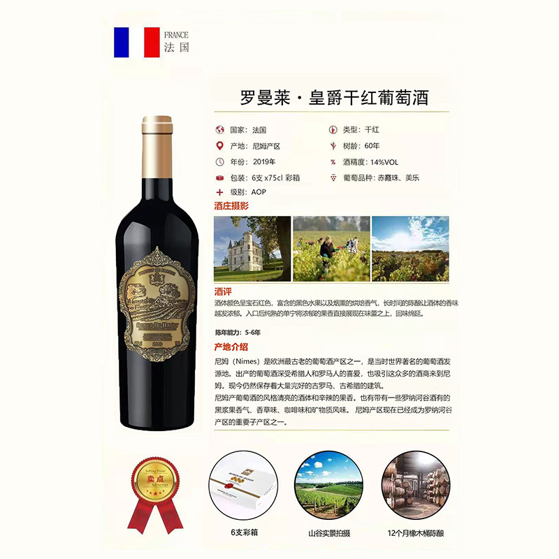 商品名称:罗曼莱皇爵干红葡萄酒