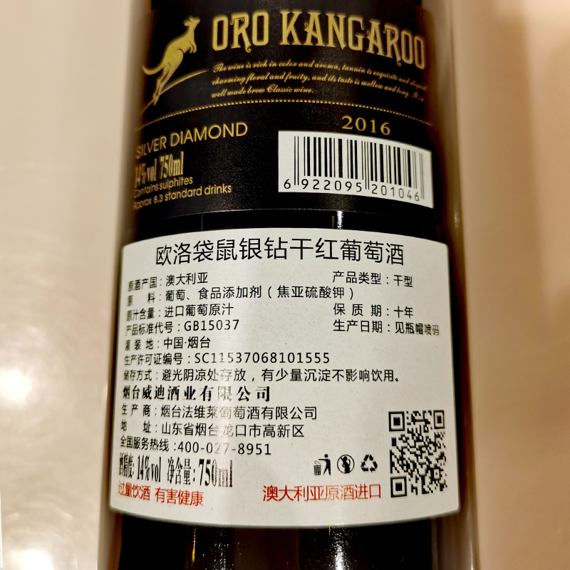 欧洛袋鼠银钻 西拉干红葡萄酒 14%VOL 750ML*6支 整箱装