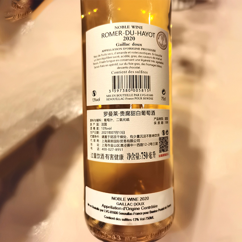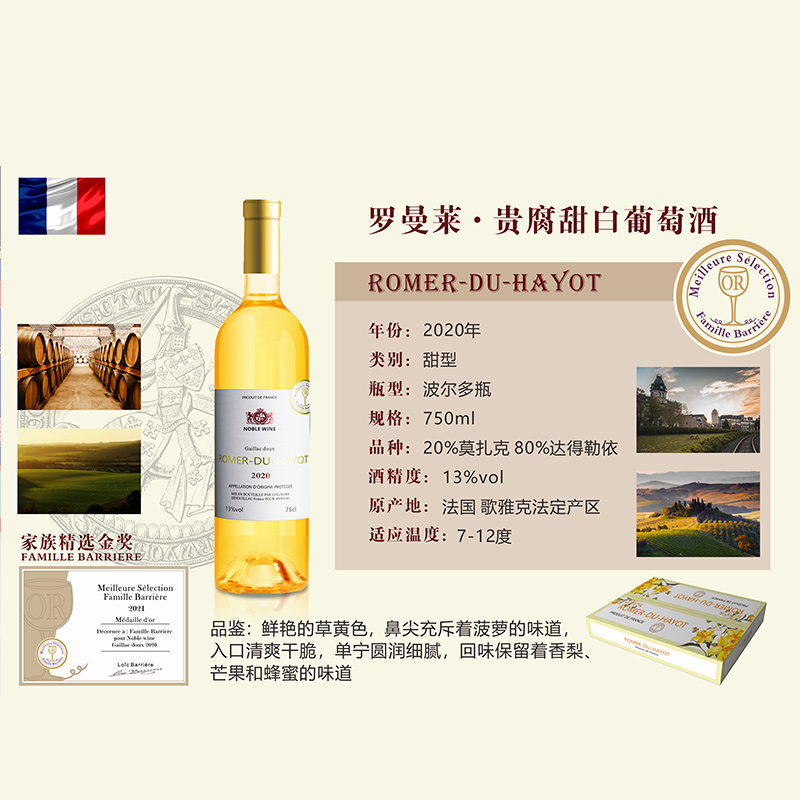 商品名称:罗曼莱贵腐甜白葡萄酒