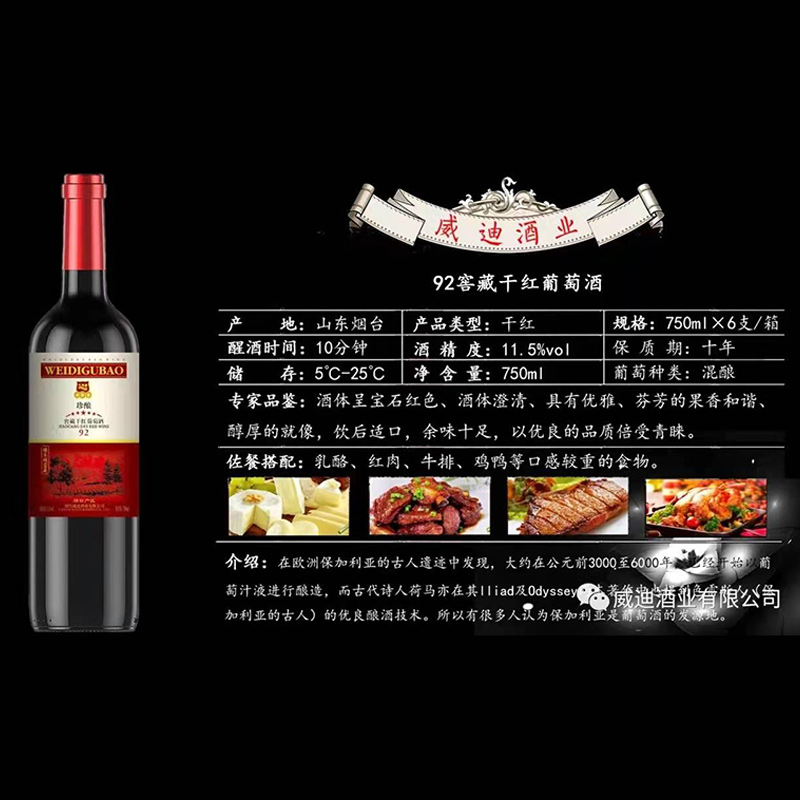 92珍酿窖藏干红葡萄酒