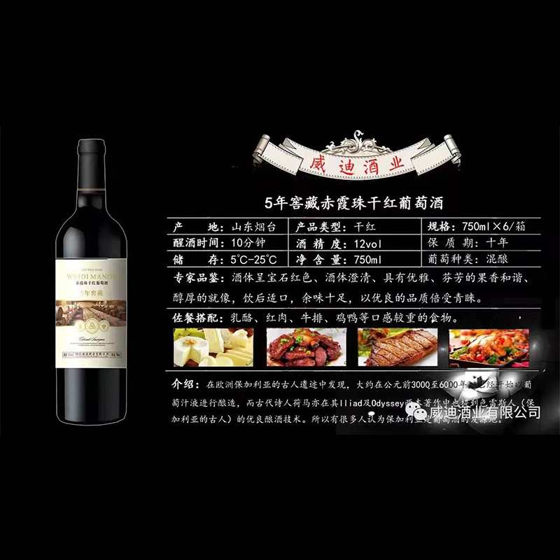 商品名称:5年窖藏赤霞珠干红葡萄酒