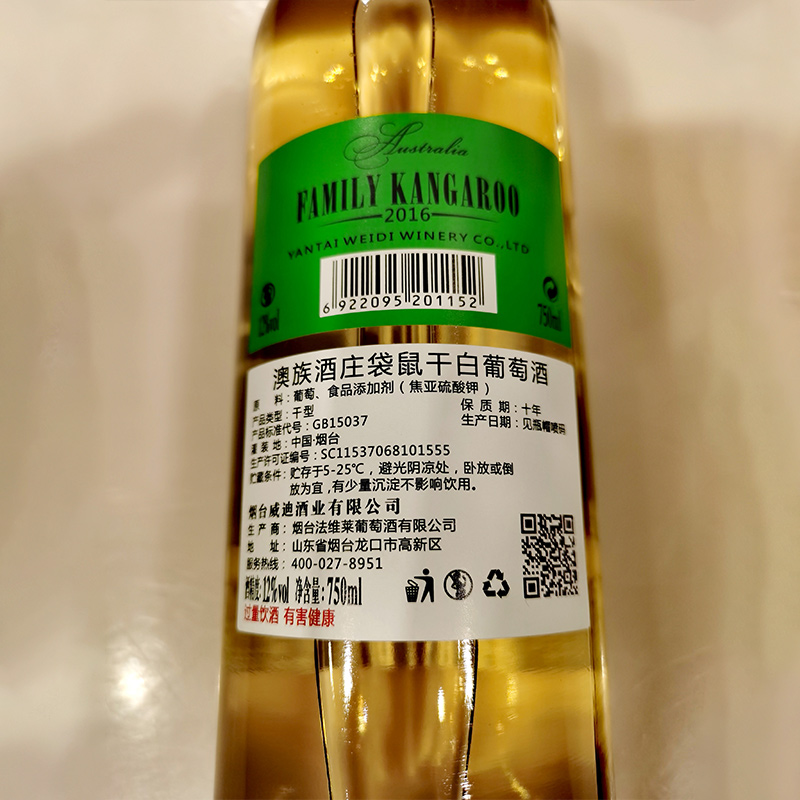 商品名称:澳族酒庄袋鼠干白葡萄酒