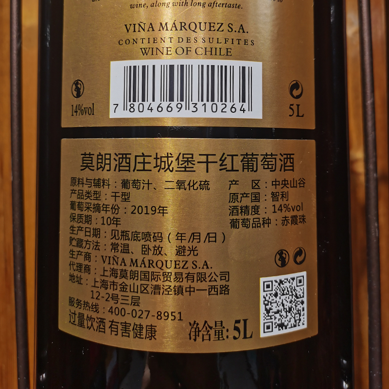 莫朗酒庄城堡 干红葡萄酒 14%VOL 5L*1支 单瓶装