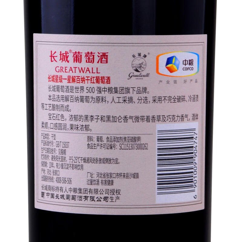 商品名称:GreatWall/长城一星干红