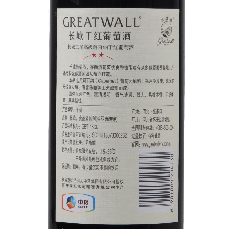 商品名称:GreatWall/长城二星干红