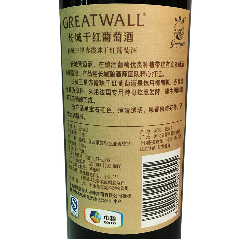 商品名称:GreatWall长城三星干红