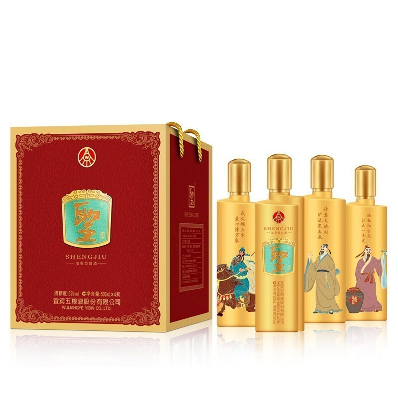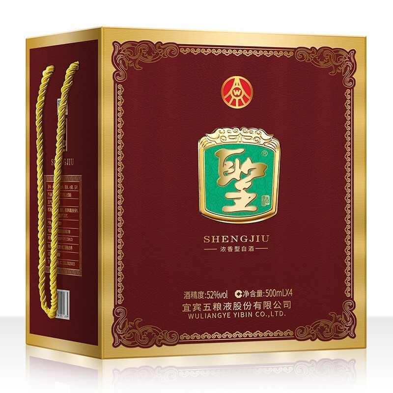 五粮液股份公司浓香型白酒 52度圣酒醇品金尊500ml*4瓶 礼盒套装