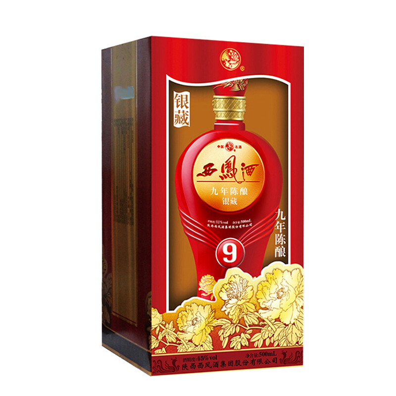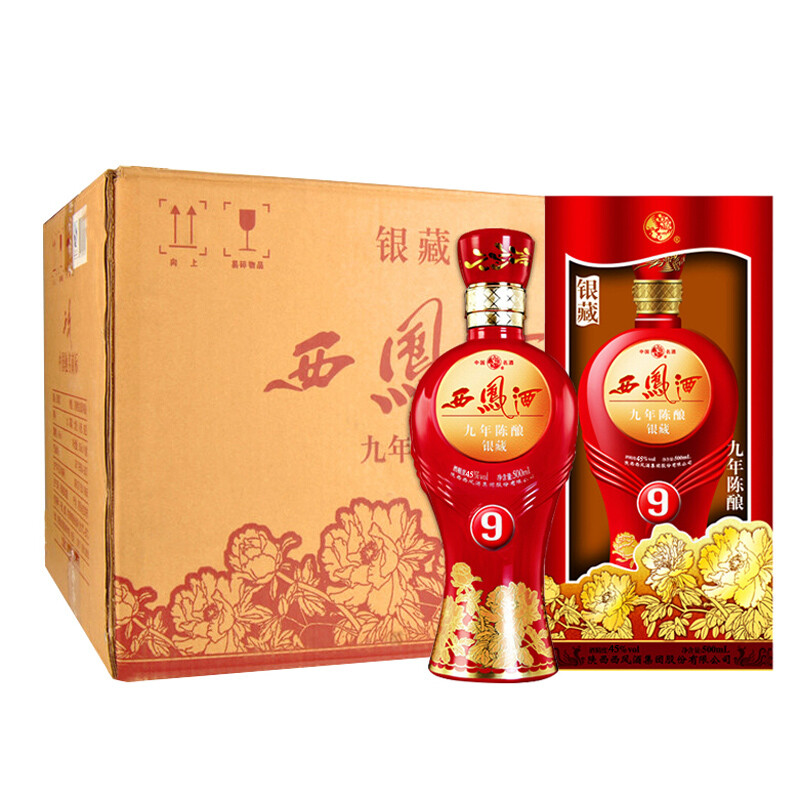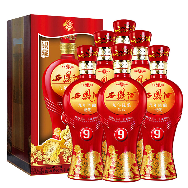西凤酒 银藏9年陈酿 45度凤香型 收藏老酒 礼盒装 白酒整箱(500mlx6) 内不含礼袋 介意勿拍