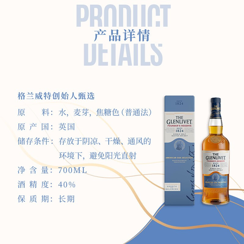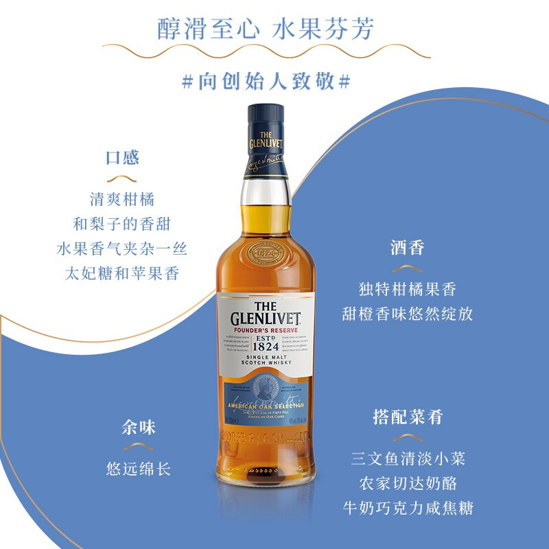 格兰威特(Glenlivet)创始人甄选系列 苏格兰 单一麦芽威士忌洋酒 700ml