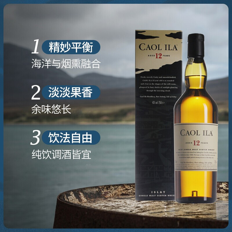 卡尔里拉12年700ml (Caol lla) 艾莱岛苏格兰单一麦芽威士忌 原装进口洋酒