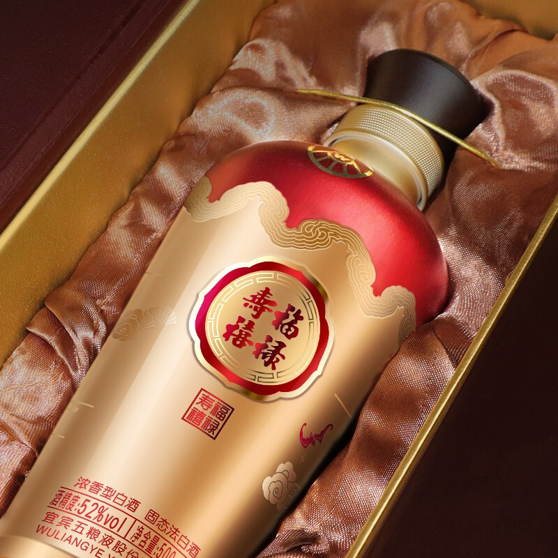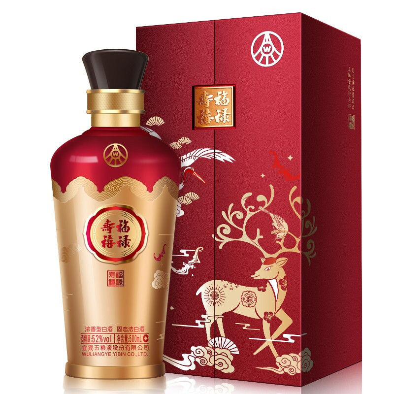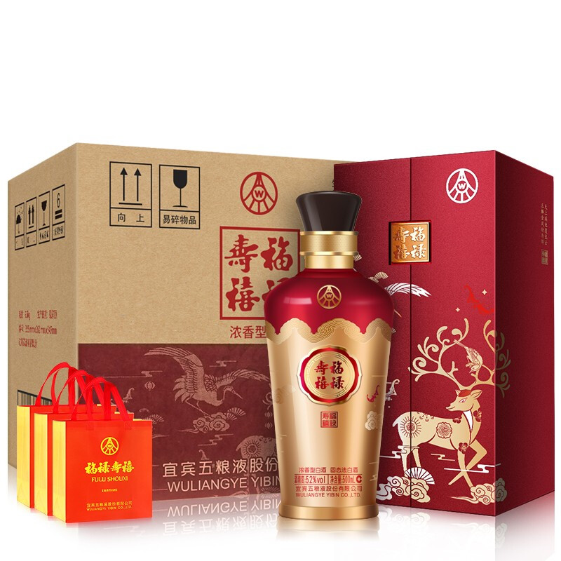 宜宾五粮液股份 52度 浓香型白酒 礼盒装喜酒礼品酒 福禄寿禧 六合同春 500ml*6瓶整箱装