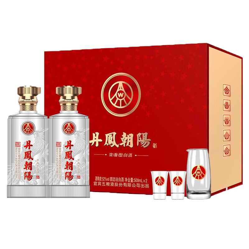 五粮液股份有限公司 丹凤朝阳 固态纯粮 实惠口粮 52° 凤景星 500ml*2瓶礼盒装 52度浓香型白酒