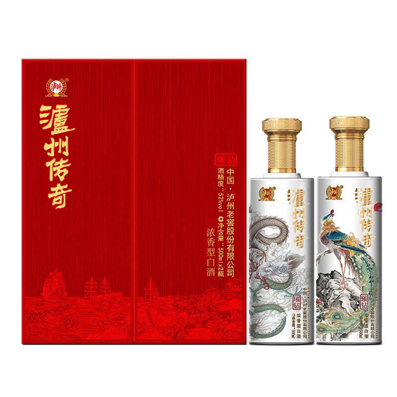泸州老窖股份公司 泸州传奇 璀钻 52度 浓香型白酒 宴会招待送礼粮食酒 500mL*2瓶*3盒 整箱装