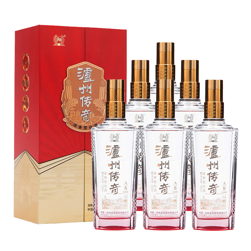 泸州老窖股份公司 泸州传奇 A8升级版 52度浓香型白酒礼盒 宴会招待送礼粮食酒 500mL*6瓶 整箱
