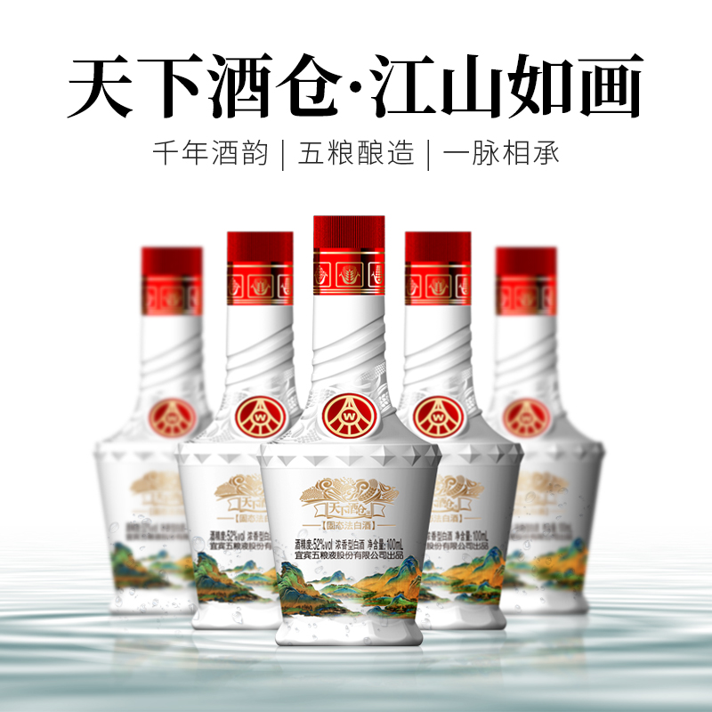 五粮液股份公司出品 52度浓香型白酒 商务宴请送礼 天下酒仓 江山如画 100ml*5瓶*6盒 整箱装