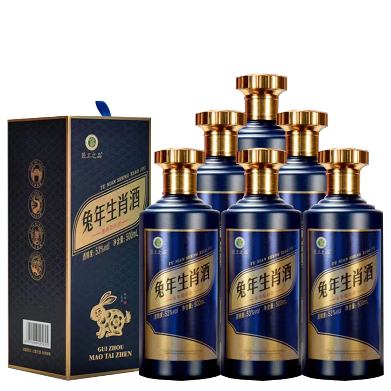 贵州茅台镇 匠工之品 兔年生肖酒 贵族蓝 53度 酱香型白酒 纯粮酿造纪念酒 500ml*6瓶 整箱