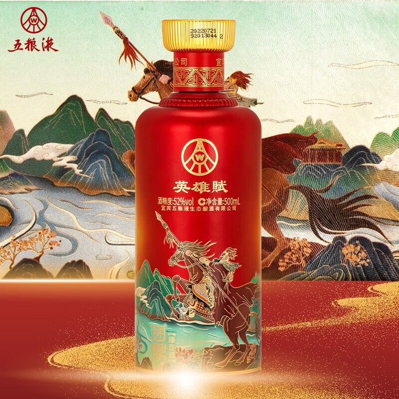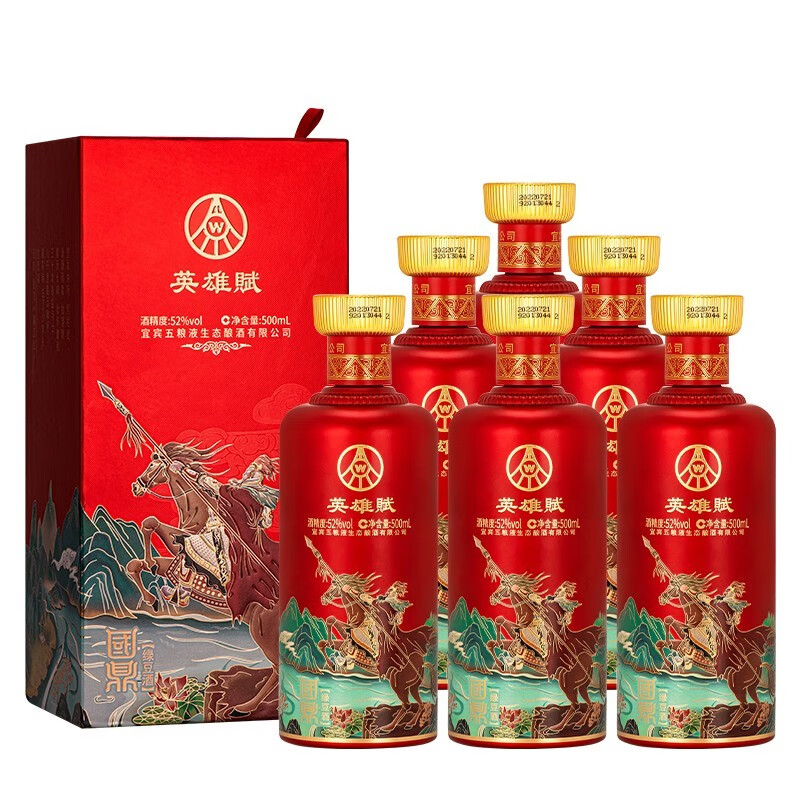 五粮液 商务宴请送礼收藏 高端礼盒 52度浓香型 五粮液英雄赋 500ml*6瓶 整箱装