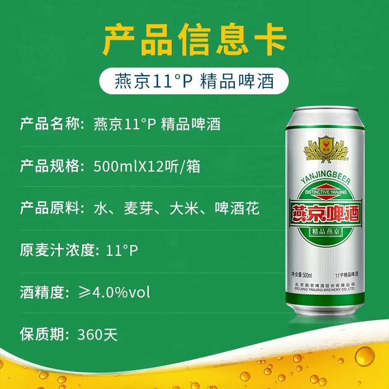 燕京啤酒 11度 精品啤酒 500ml*12听 整箱(就近分仓发货产品,下单前咨询客服确认)