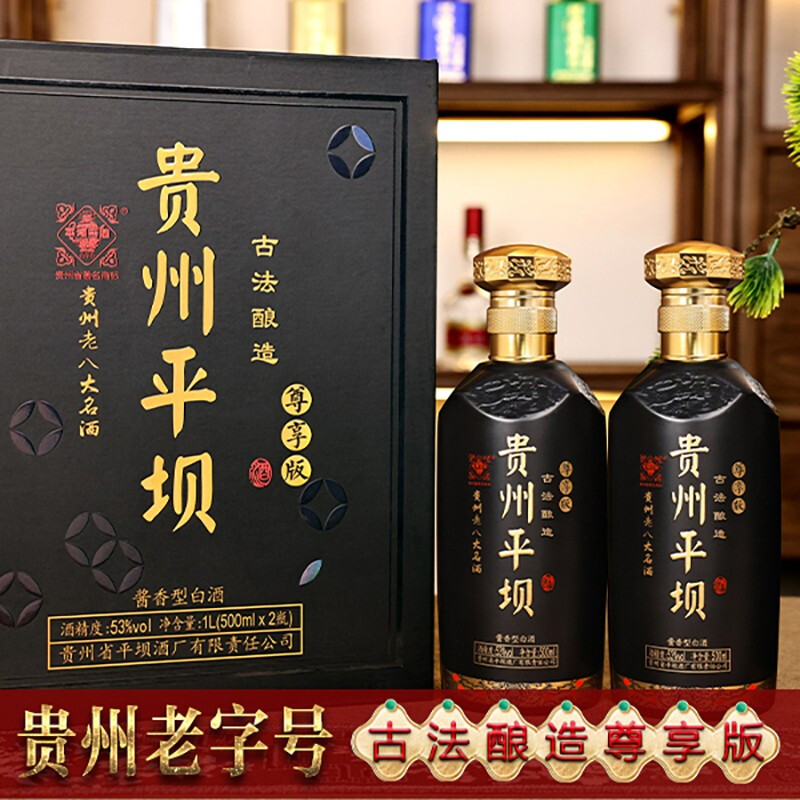 贵州平坝酒 尊享版53度 酱香型白酒 纯粮酒 500ml*2瓶*3盒 整箱装