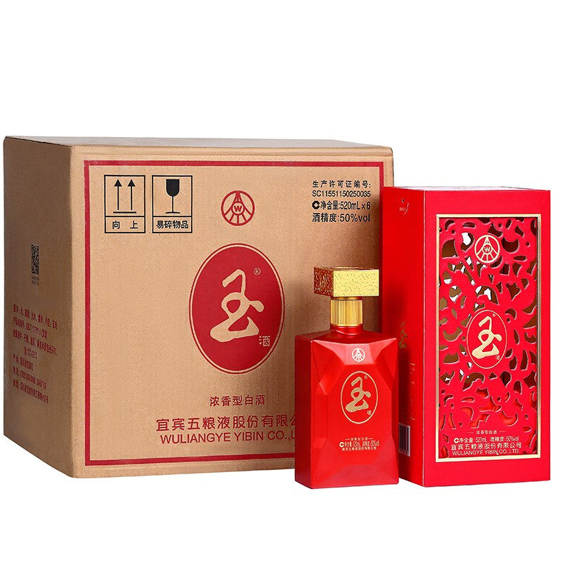 五粮液股份公司 玉酒 浓香型白酒 中国红(201) 50度 520ml*6瓶 整箱装