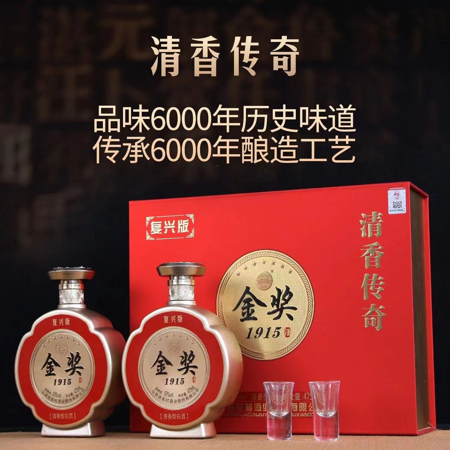 山西杏花村酒业 清香传奇 金奖1915 复兴版 清香型白酒 53度 475ml*2瓶 礼盒装