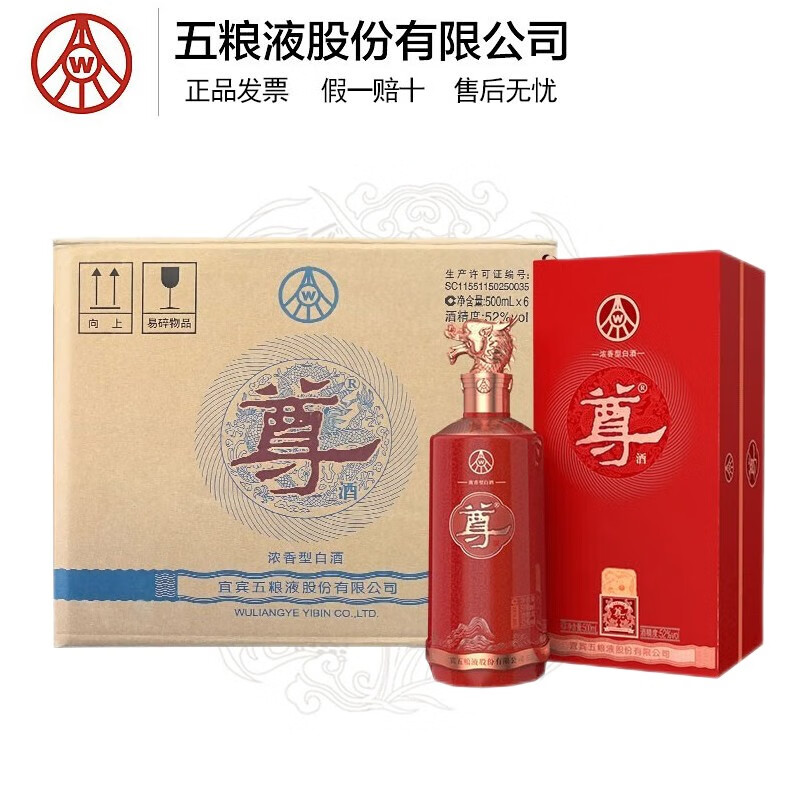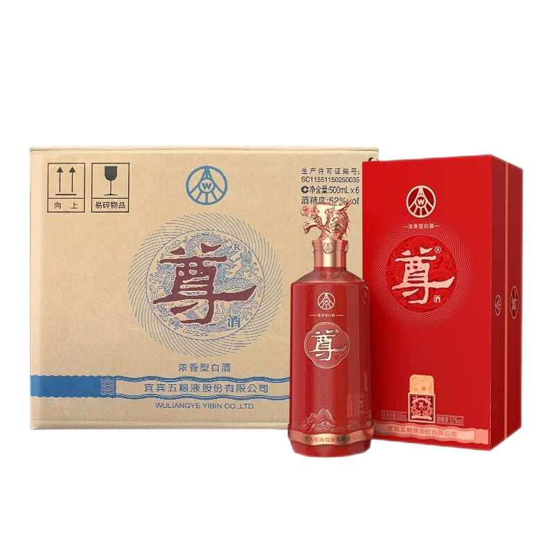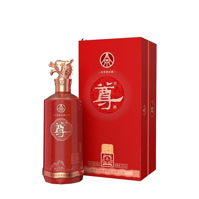 五粮液股份尊酒红尊龙52度浓香型白酒
