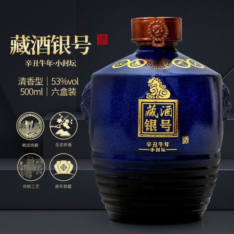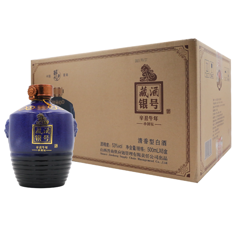 藏酒银号 小封坛 53度 清香型白酒 500ml*6瓶 整箱