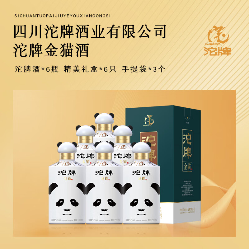 沱牌 金猫酒 52度 浓香型白酒粮食酒 礼盒装送礼佳品 500ml*6瓶 整箱