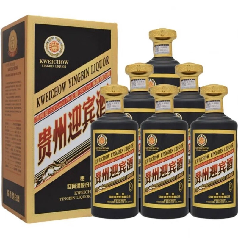 贵州迎宾酒 黑金至尊 53度 酱香型高度粮食整箱白酒 收藏聚会送礼佳品 6瓶*500ml