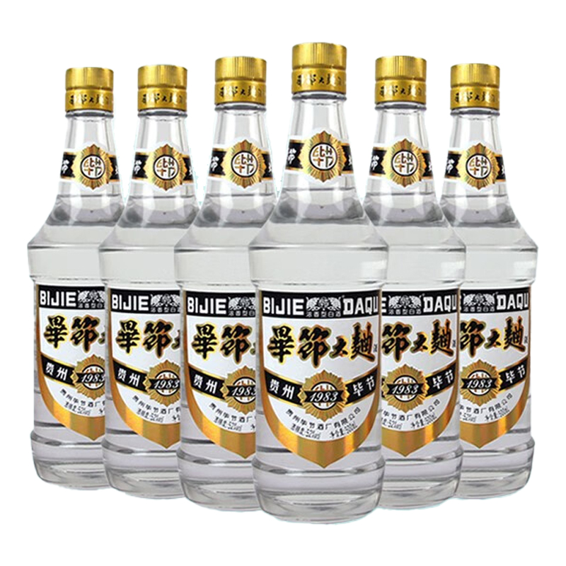 毕节大曲1983黑标白酒 贵州老八大酒 整箱浓香型52度黔派浓香纯粮食酒 500ml*6瓶整箱装