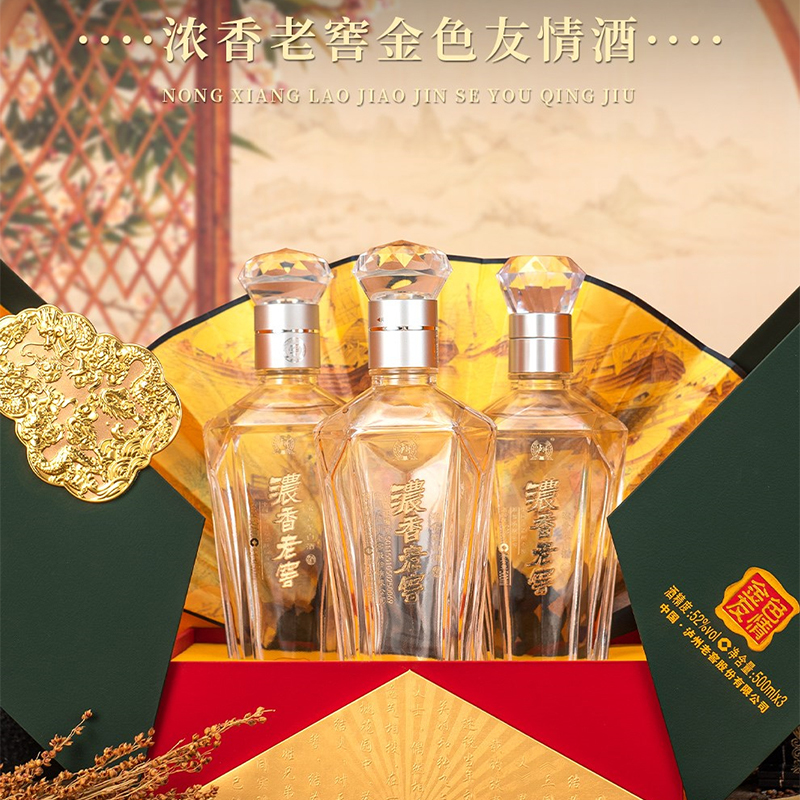 泸州老窖 泸香老窖 金色友情 浓香型白酒 52度 500ml*3瓶 礼盒