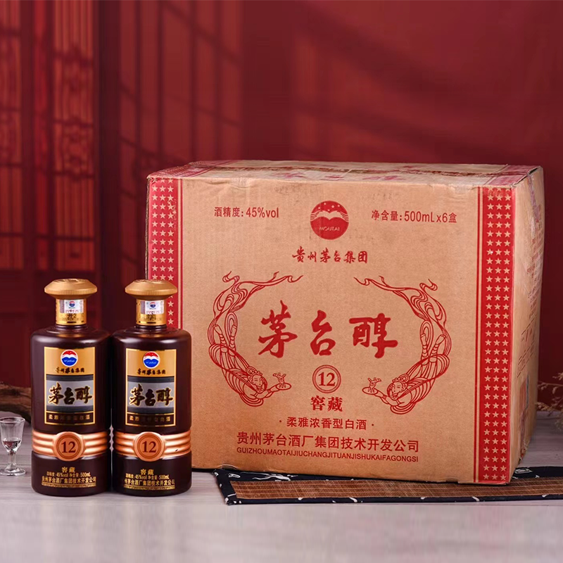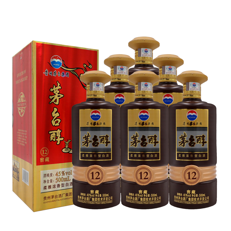 茅台集团 茅台醇窖藏12 红 2012年老酒 45度 浓香型白酒 500ml*6瓶 整箱