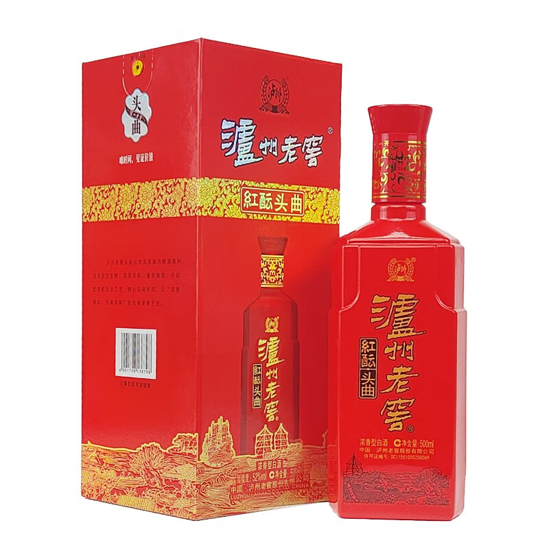 泸州老窖 红酝头曲 52度 浓香型白酒 纯粮酿造 500ml*6瓶 整箱