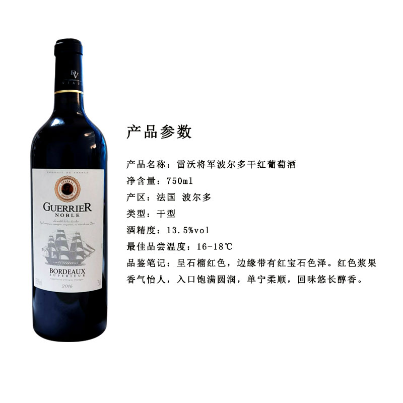 雷沃堡干红葡萄酒 法国波尔多右岸波美侯产区村庄级名庄原瓶进口红酒 雷沃将军波尔多750ml*6整箱装