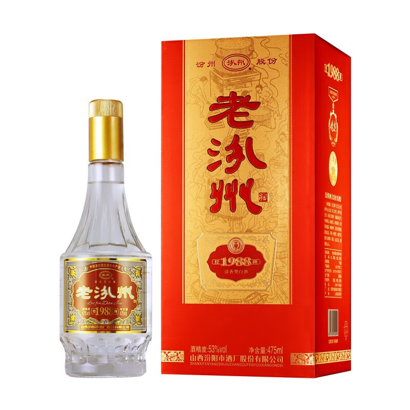 汾州山西白酒 老汾州酒经典1988 53度 清香型高度 礼盒装送礼佳品 475ml*6瓶 整箱
