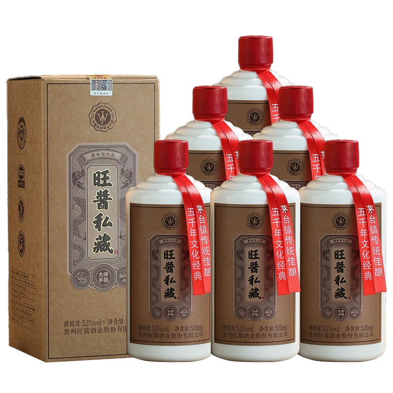 贵州茅台镇 旺酱私藏酒 53度 酱香型白酒 送礼用酒 500mL*6瓶 整箱