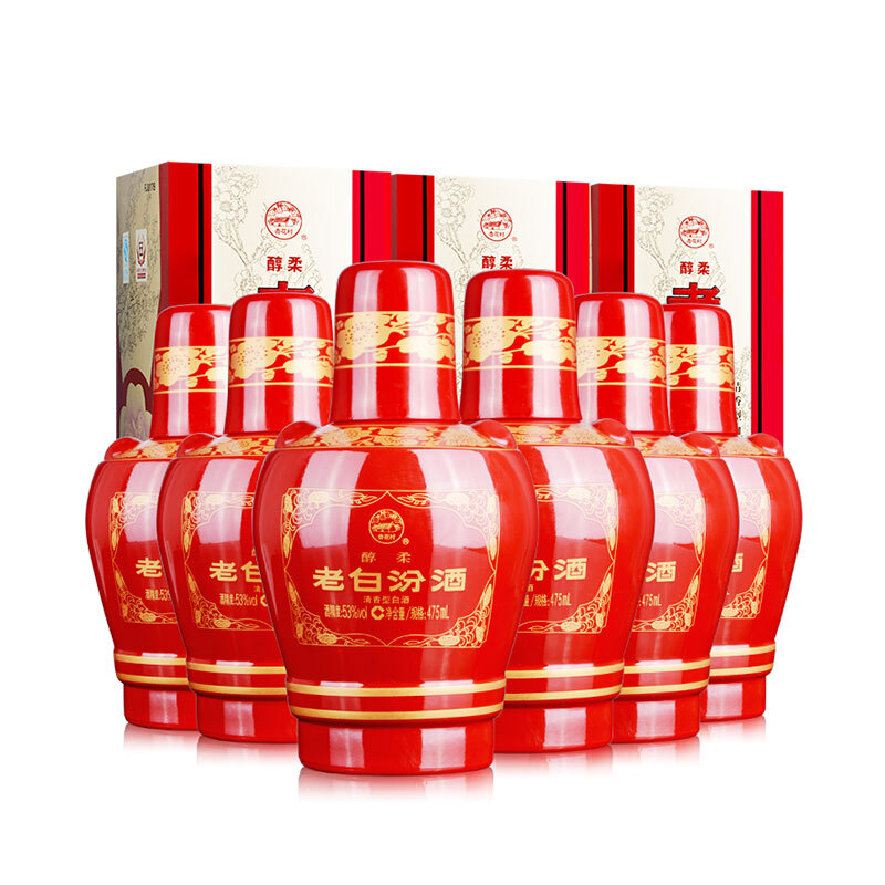 汾酒 白酒 老白汾醇柔 清香型 53度 475ml*6瓶 整箱装