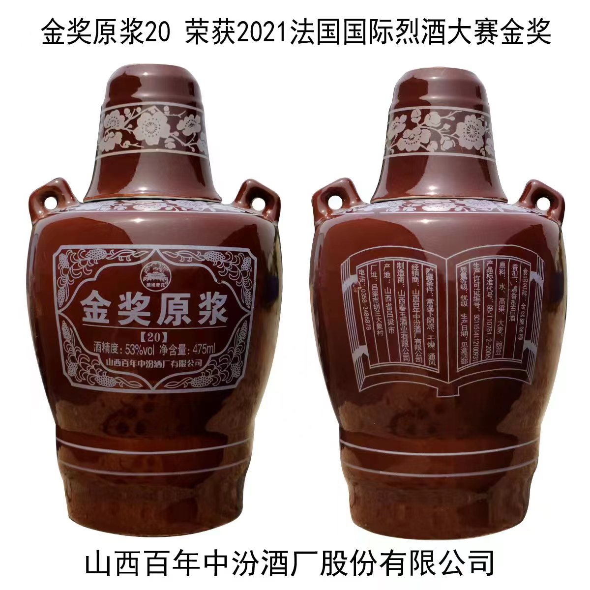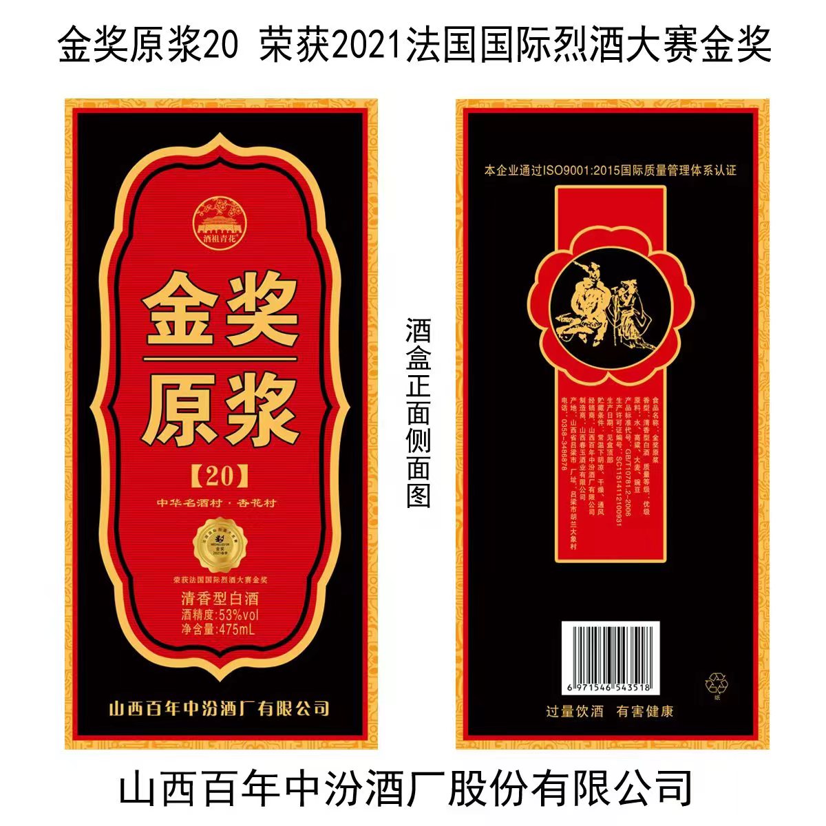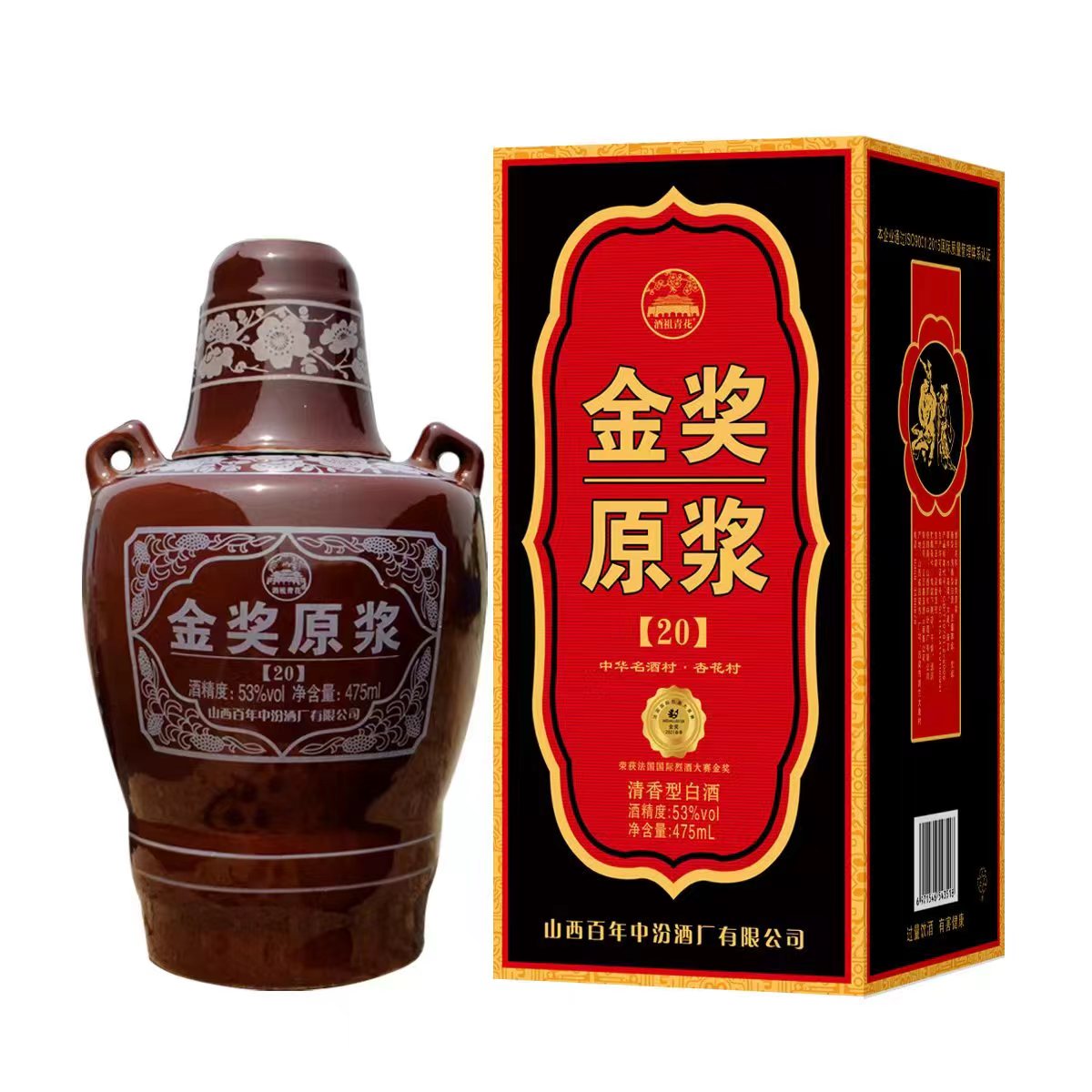 山西杏花村 金奖原浆20 53度 清香型白酒 纯粮固态发酵 475ml*6瓶 整箱