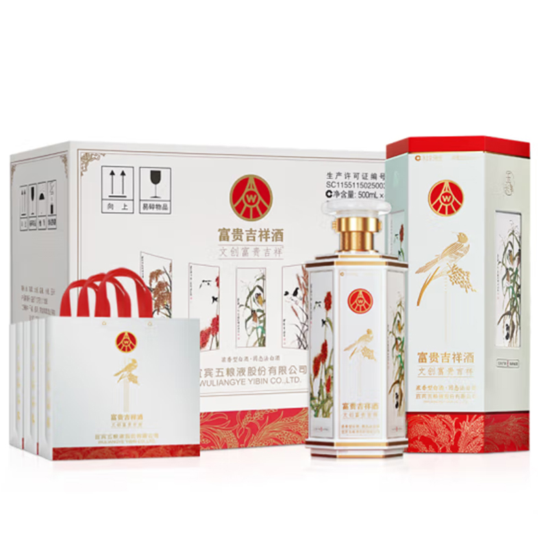 五粮液股份 富贵吉祥 文创五谷 52度 浓香型白酒 礼鉴收藏 500ml*2瓶*3盒 整箱