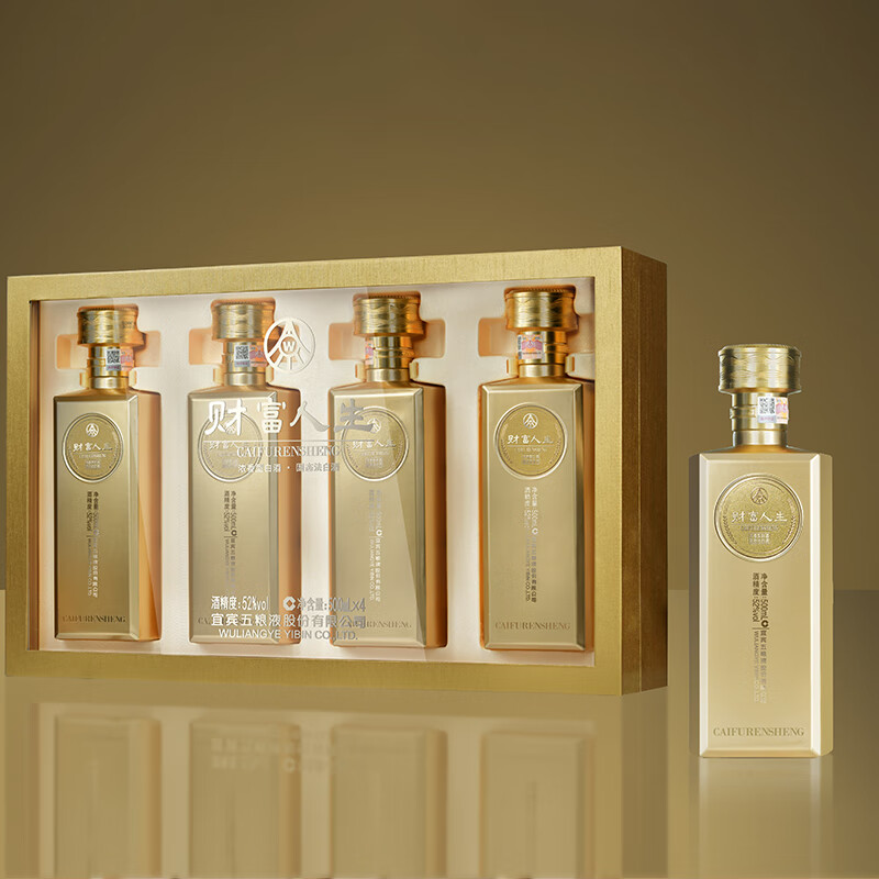 五粮液(WULIANGYE)财富人生 艺术金砖 52度 浓香型白酒 艺术摆件 500mL*4瓶 礼盒