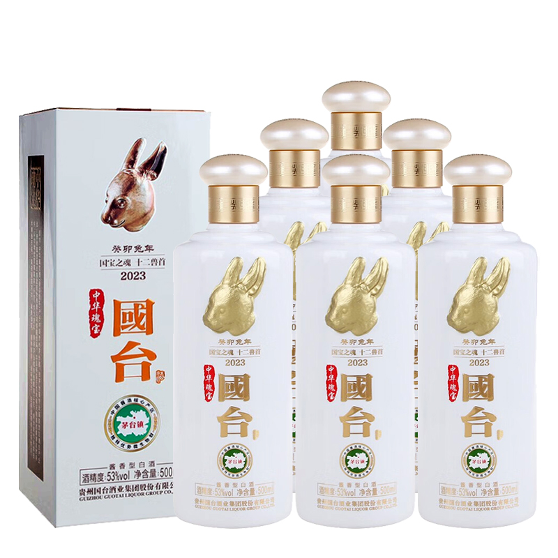 国台国台酒 国台十二兽首酒(兔首)陈酿瑰宝 53度 酱香型白酒 500mL*6瓶 整箱