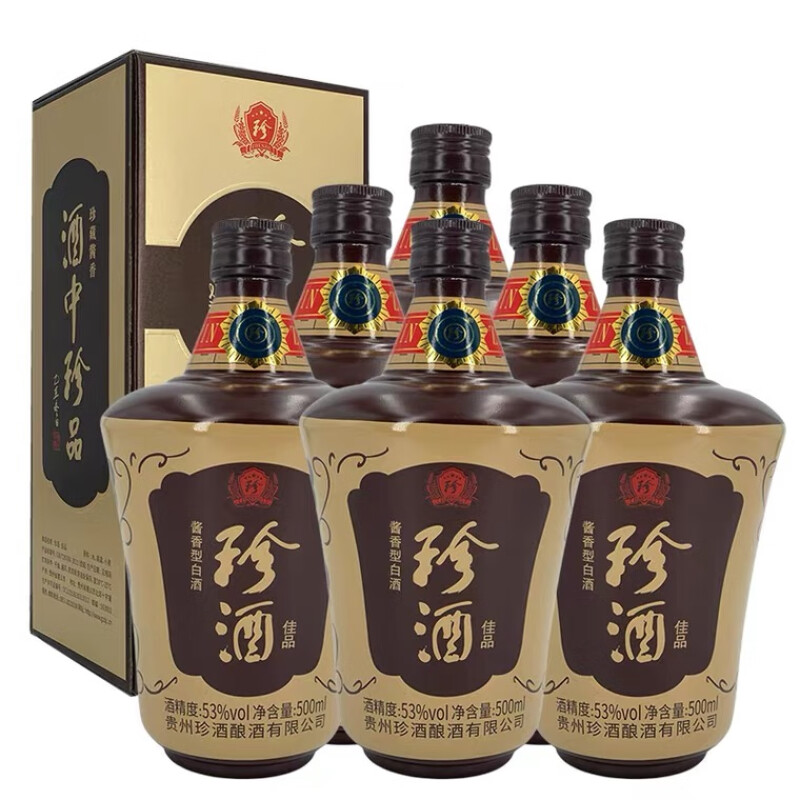 珍酒复古佳品 53度 酱香型白酒 500ml*6瓶 整箱