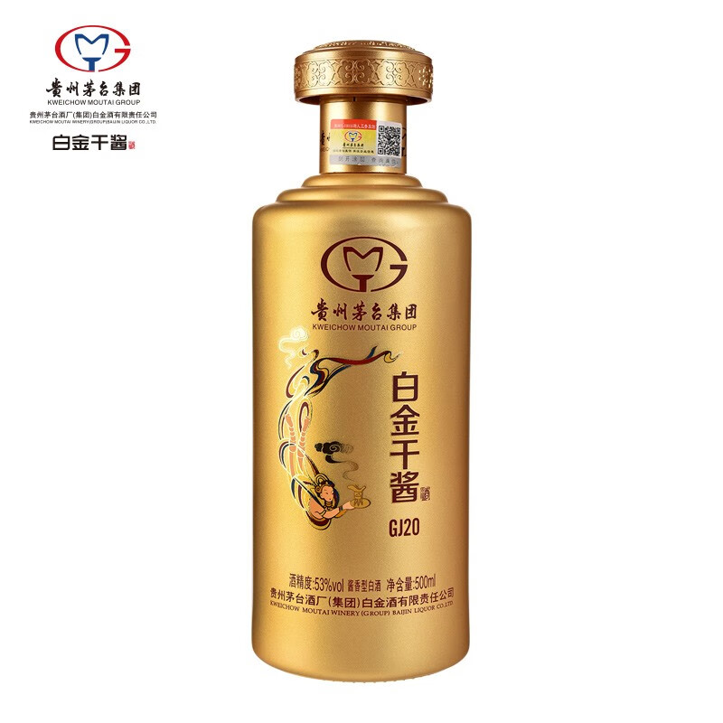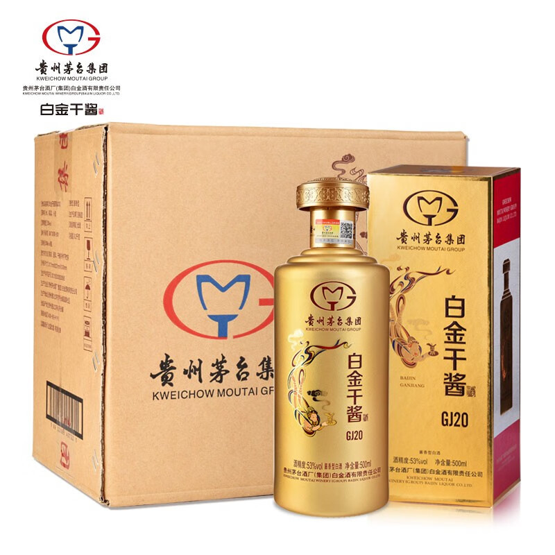 贵州茅台集团 白金干酱GJ20 53度 酱香型白酒 收藏送礼 2019年 500ml*6瓶 整箱