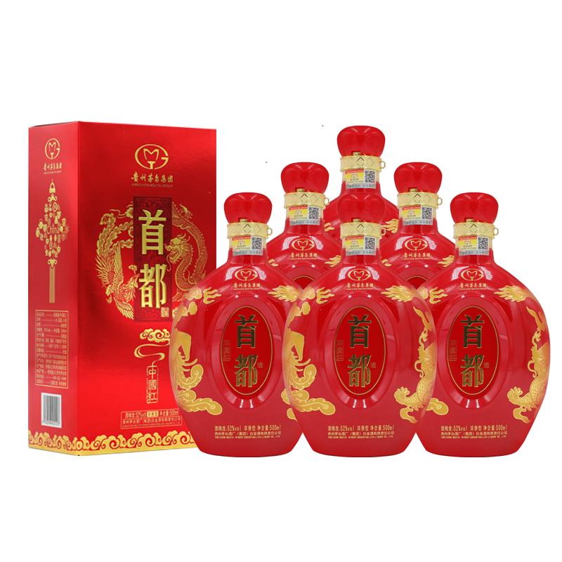 茅台集团 首都中国红 52度 浓香型白酒 500ml*6瓶 整箱