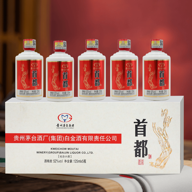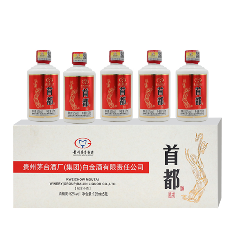 茅台集团 首都纪念小酒 52度 浓香型白酒 125ml*5瓶 整盒