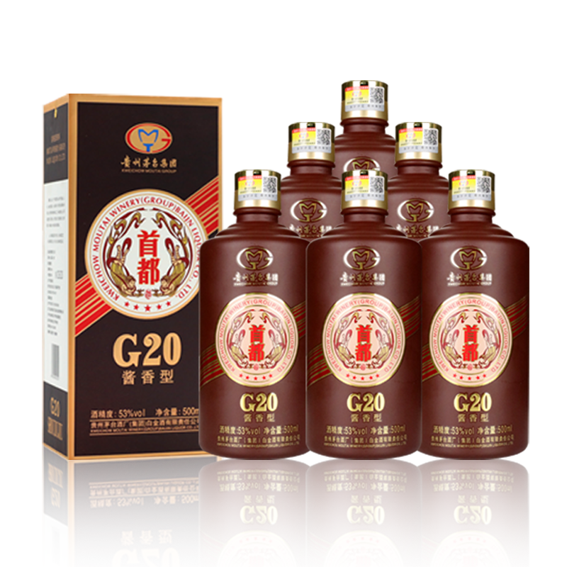 茅台集团 首都G20 2016年老酒 53度 酱香型白酒 500ml*6瓶 整箱