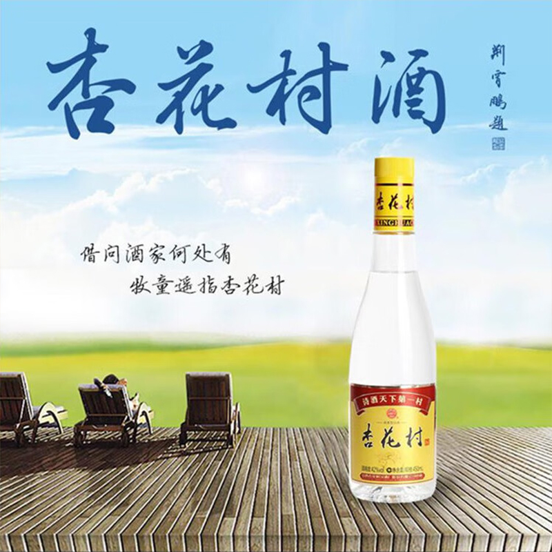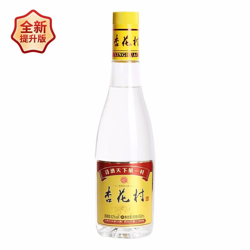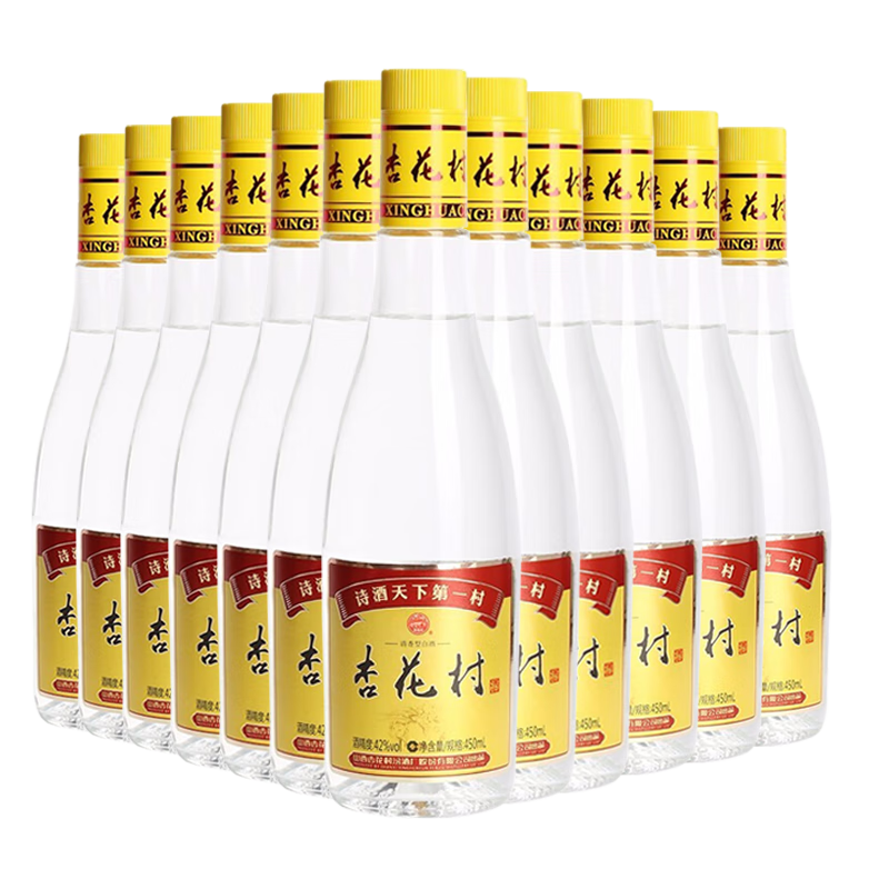 汾酒 杏花村 黄盖 金标玻瓶 42度 清香型白酒 口粮酒 450mL*12瓶 整箱装